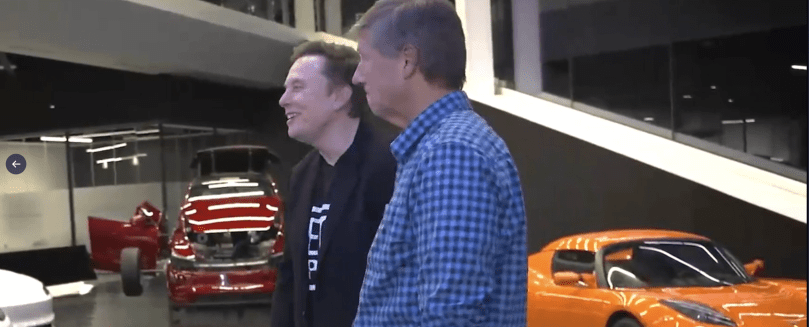 I know this interview took place after sunset, it’s clear from this pic I caught from the interview previews. And when most people stop working, head home, watch TV, go to the gym, or meet friends to eat out, Elon works. He’s at the factory.