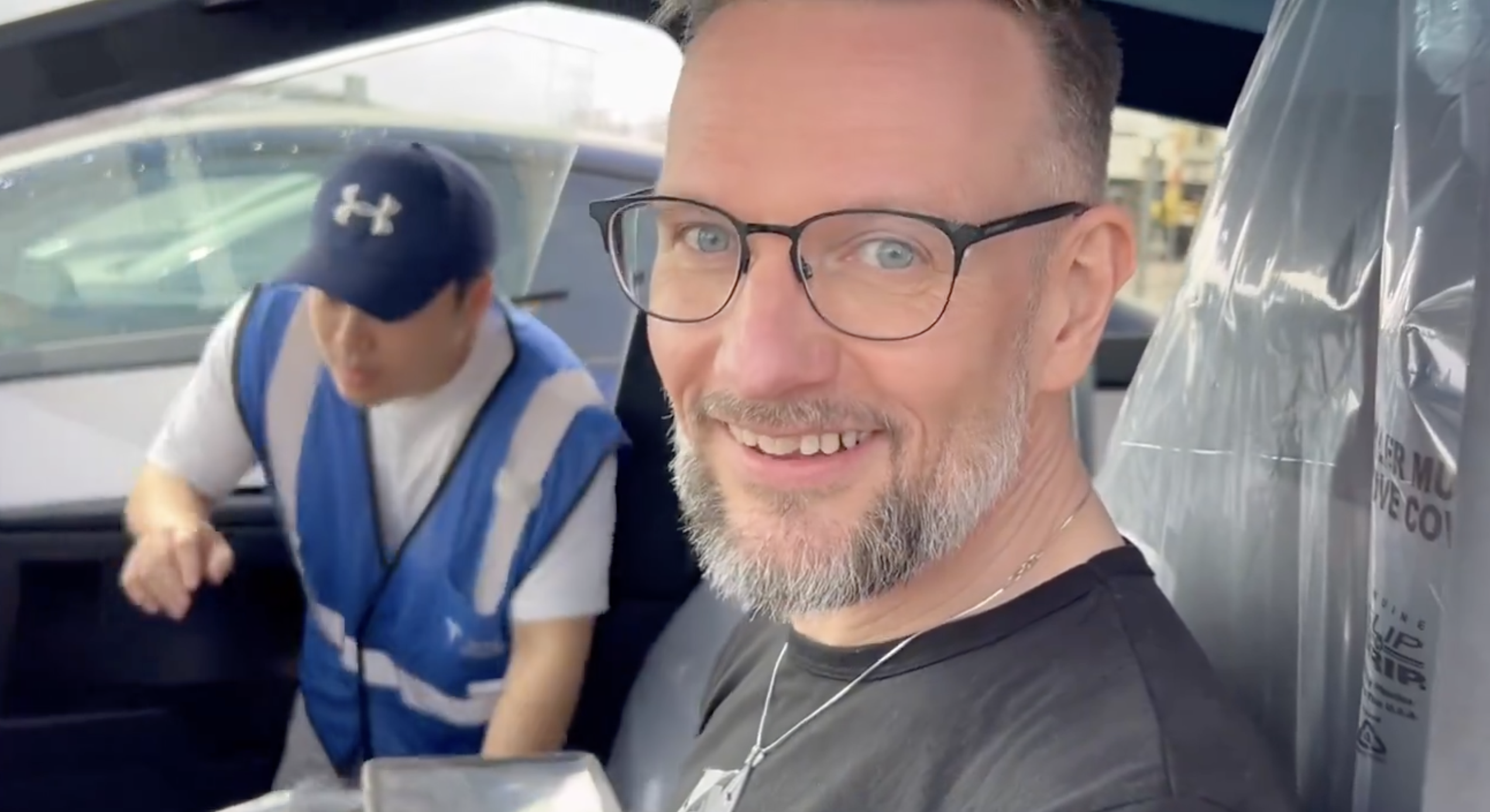 Arve in a freshly made Cybertruck near Gigafactory Texas. Smile tells all!