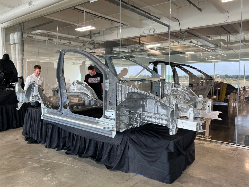 Tesla Coffee Bar, credit: the authorModel Y structural frame by Coffee Bar at Tesla Giga Texas Cafeteria by glass overlooking Model Y production. credit: the author.
