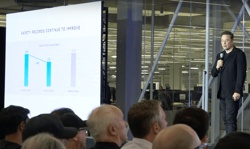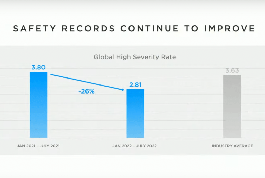“Safety Records Continue To Improve” credit: Tesla 2022 Shareholder’s Meeting