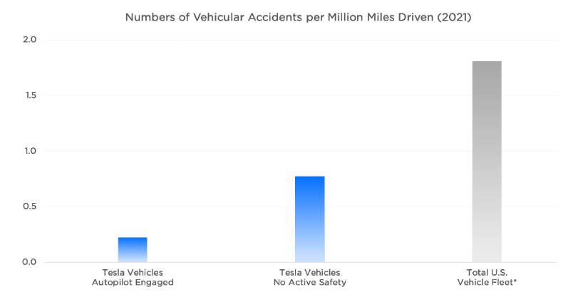 “The safety that we are seeing, when the car is in FSD mode is actually significantly greater than the safety that we are seeing when it is not, which a key threshold for going to wide beta.” – Elon Musk
