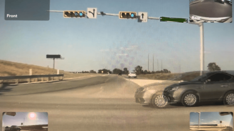 Watch this video as Tesla vehicle slows down to avoid an accident.