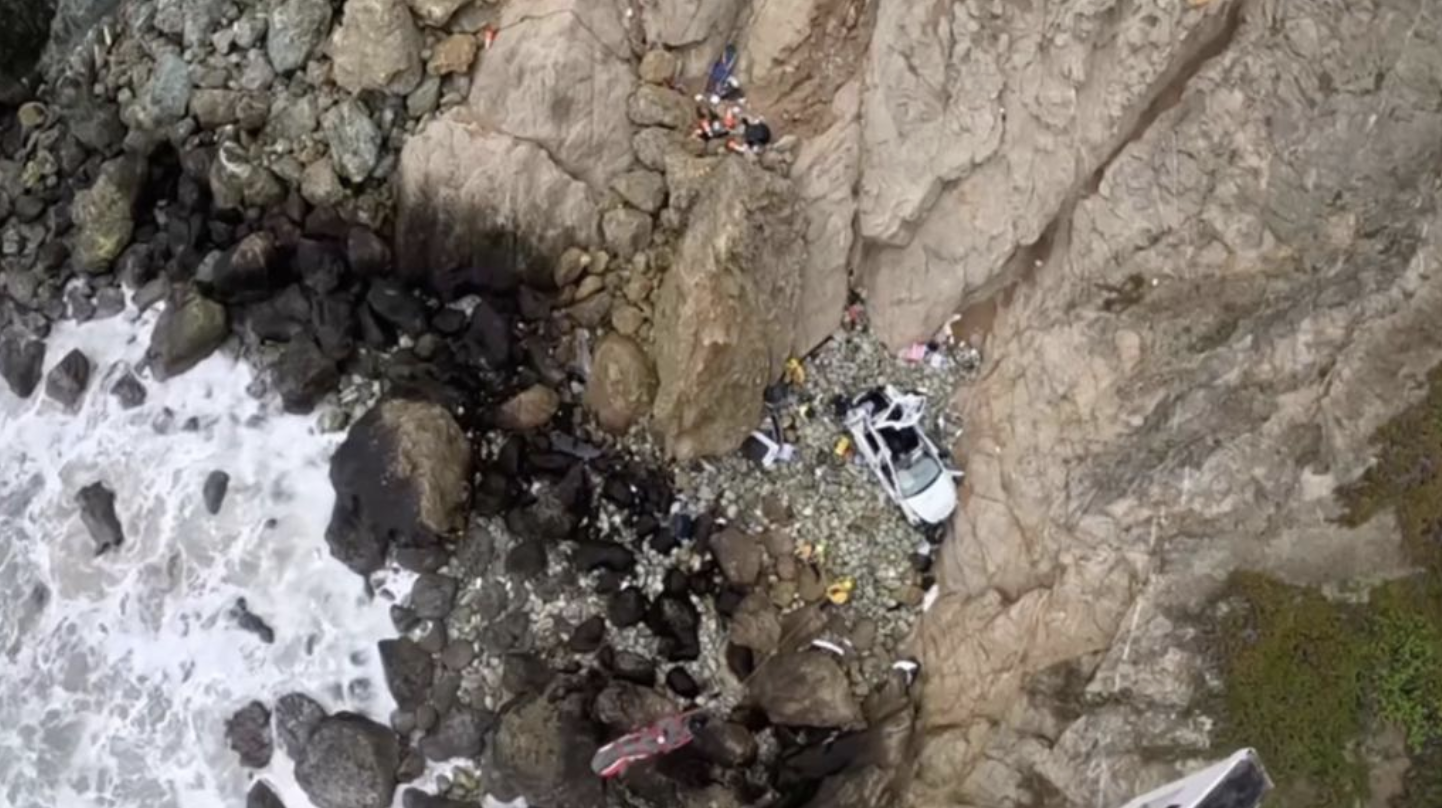 Screenshot of crash site from California Highway Patrol video, shot from rescue helicopter courtesy: CHP Golden Gate Division Air Ops