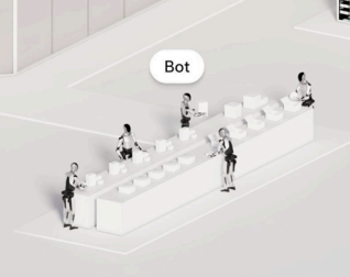 Tesla’s image depicts Optimus bots working. The setting could be industrial or food service or other.