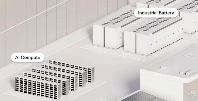Tesla’s image depicts industrial batteries and AI Compute